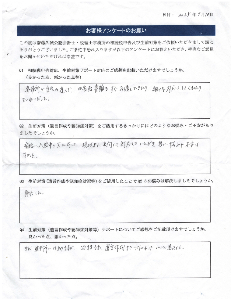 齋藤久誠公認会計士・税理士事務所は、お客様一人ひとりの生前相続対策をワンストップで解決する税理士事務所です。